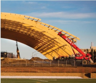 IP Schools & Sports Centre Facilities, Fire Departments, IP Coop and Malls, 3-bedroom homes, twin-tower condominiums, public IP libraries, hotels, etc. using Cross Laminated Timber with examples as shown below from the Montreal Canadian NORDIC Structures