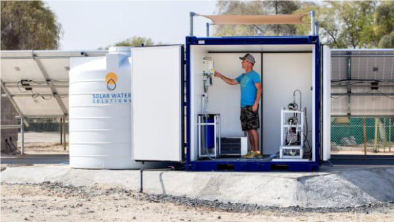 Desalination system running on solar power without any batteries or diesel, enabled by ANVS® technology. Revolutionary for both your budget and for the environment by Solar Water Solutions Finland.